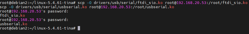 scp -O drivers/usb/serial/ftdi_sio.ko [email protected]:/root/ftdi_sio.ko